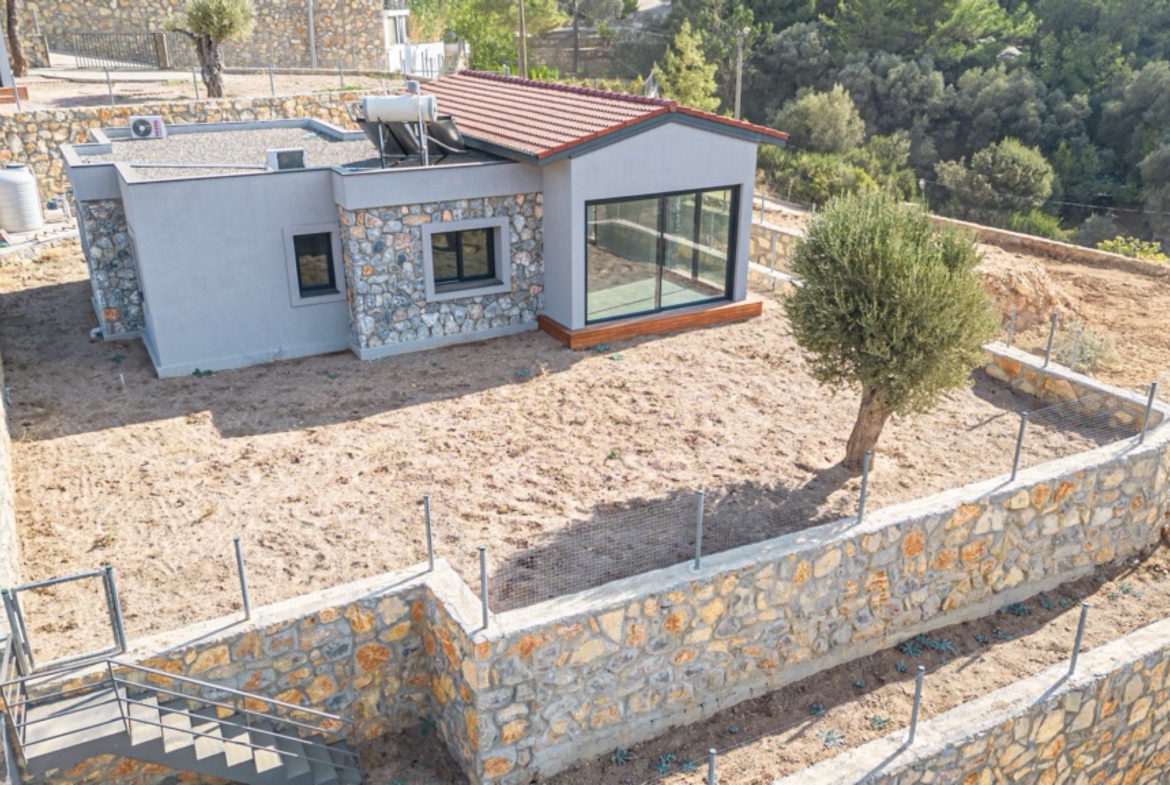 Bodrum Yalıçiftlik 650 m2 Bahçeli Doğa Manzaralı Tek Kat Taş Ev
