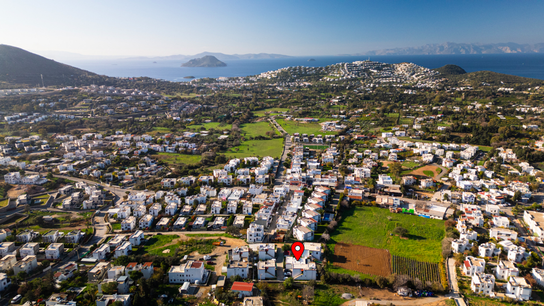 Evin bulunduğu sokak, ana cadde olan Gümüşlük Caddesi’ne yakınlığı sayesinde ulaşımı kolay; buna karşın cadde gürültüsünden içerde kalması nedeniyle sakin ve yerleşik bir dokuya sahiptir. Bu özellik, bölgeyi “yaz-kış yaşanabilir konut lokasyonu” açısından avantajlı kılar.